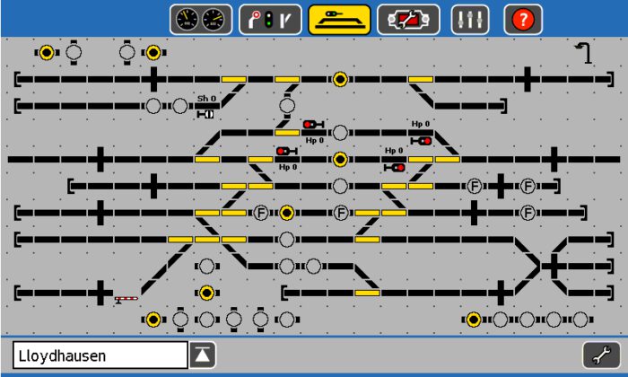 – Die ‚Kreise‘ stehen für Fahrtrassen-Schaltungen (ausgemalte Kreise stehen für aktive Fahrstrassen)