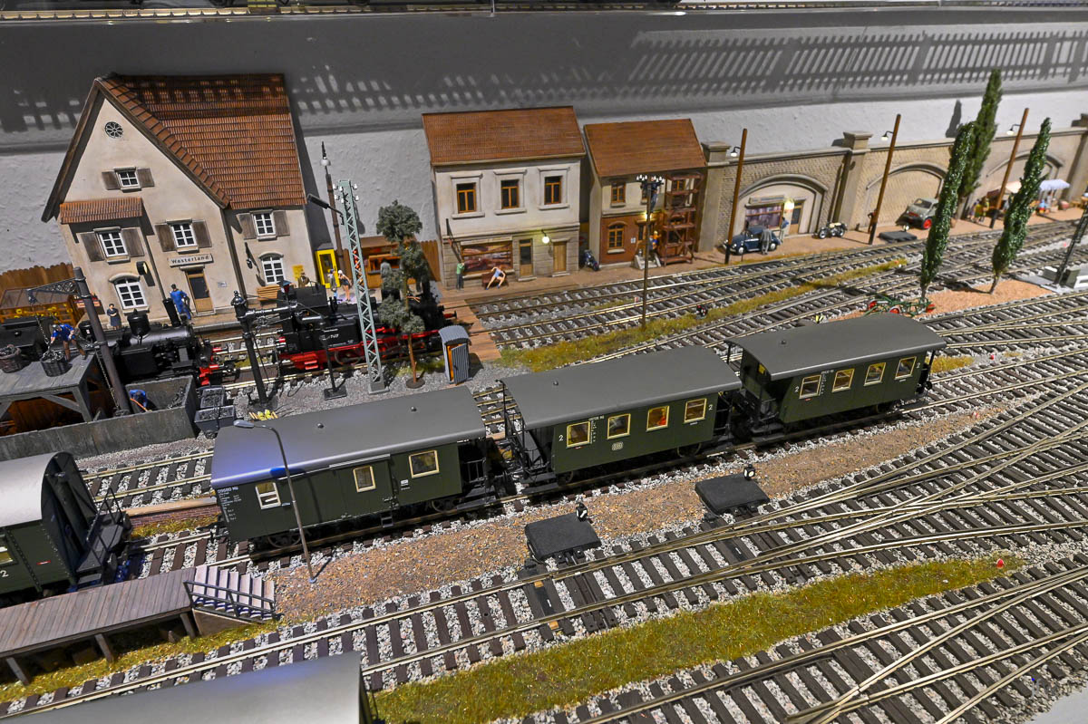 Klar, so ganz ernst nehmen kann man diese Strecke nicht. Aber sie macht verdammt viel Spaß. Eine komplette Fahrt von der Manufaktur ausgehend bis zum Haltepunkt Lloydhausen dauert trotz der nur 450cm Anlagen-Gesamtbreite ganz schööön lange. Also, Vorgabe erreicht.