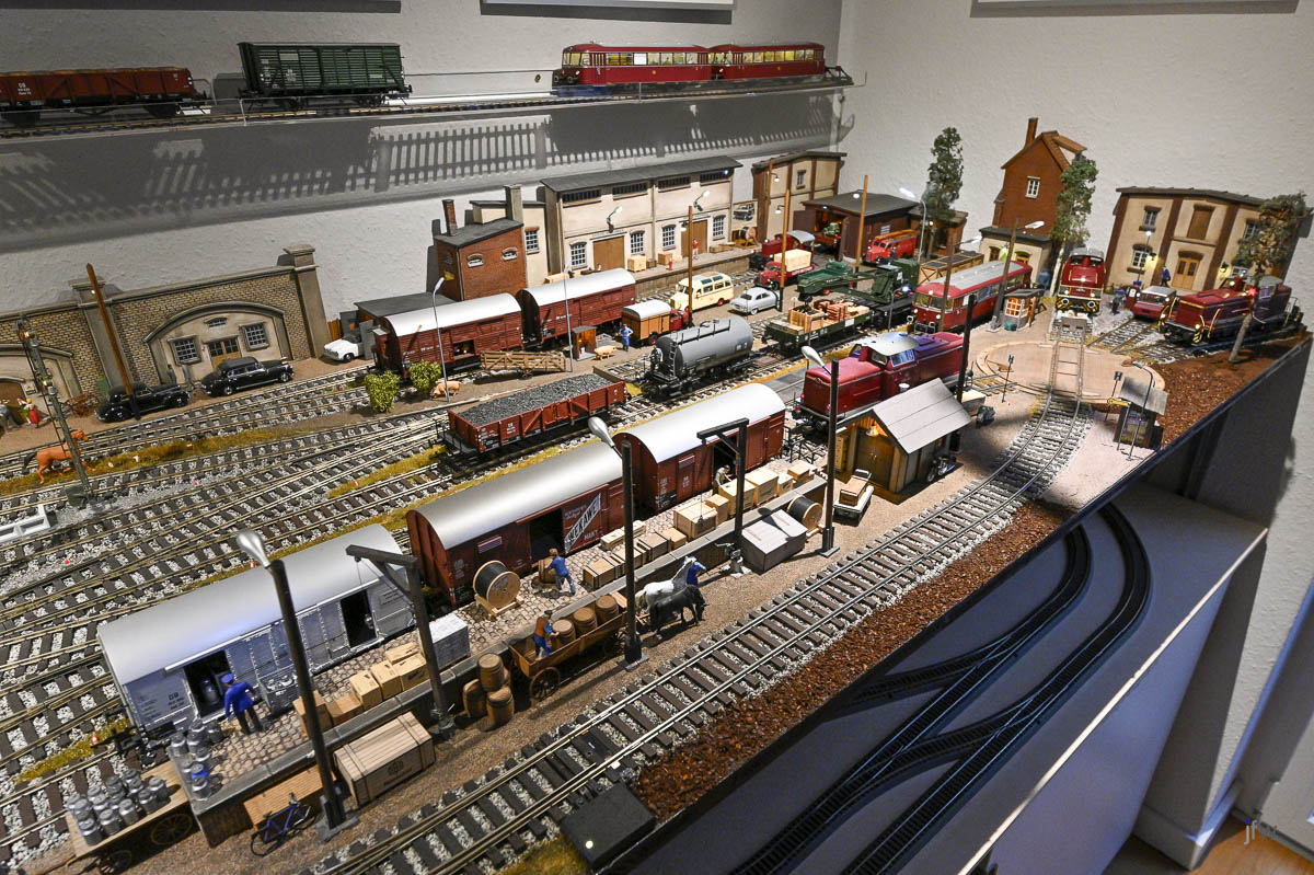 Obwohl nur eine Fläche von 450 x 100 cm zu Verfügung stand, wollte ich trotz dessen möglichst viele Rangier- und Fahrmöglichkeiten unterbringen. Das war eine Herausforderung.