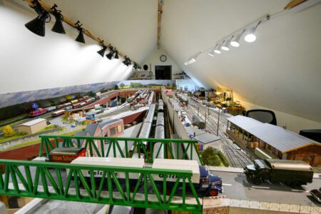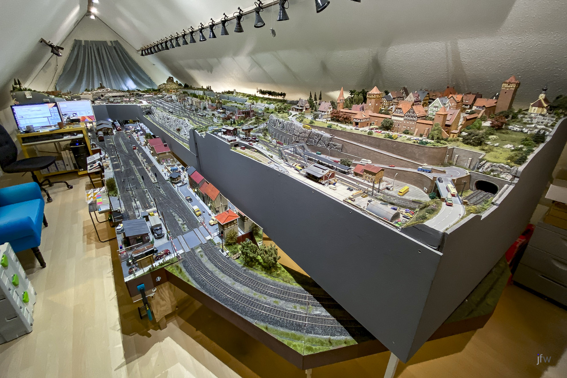 Mylinnburg ist eine große Spur0-Anlage, die als solches zunächst gar nicht geplant war. Denn es begann alles mit Spur N. Jahrelang habe ich akribisch eine umfangreiche und sehr detallierte N-Anlage aufgebaut und betrieben. Mit allem was zu einer kompletten Anlage dazugehört, einschließlich mehrere Schatten-Bahnhöfe. Computergesteuert.