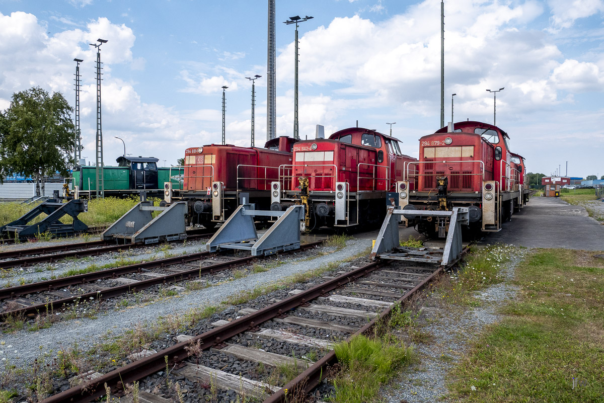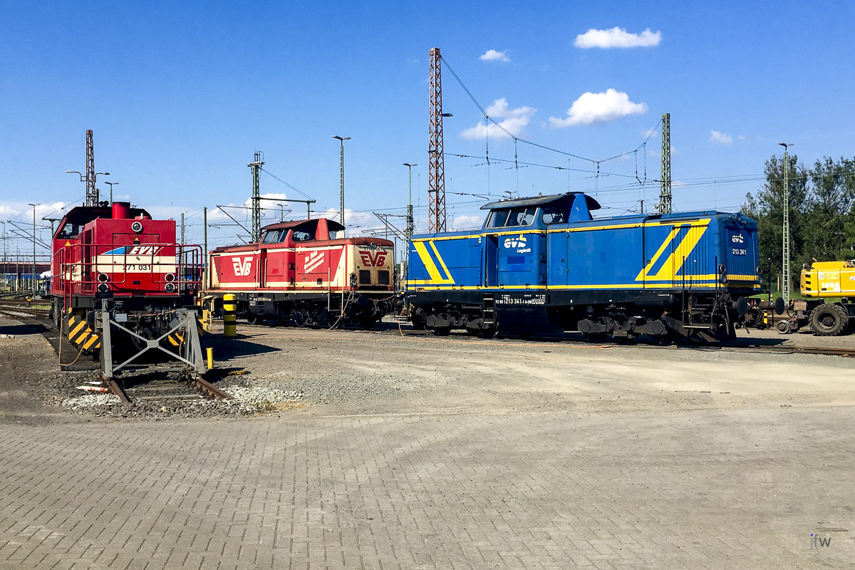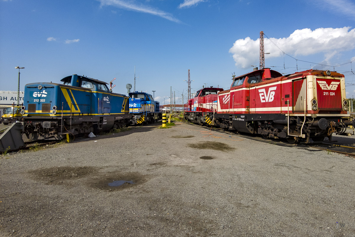In Bremerhaven gibt es eine Menge Rangierloks, die für den Container- und Autoverladewagen-Transport benötigt werden.